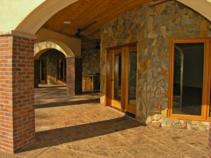 kitchen, fireplace, professionally landscaped yard, stamped patio